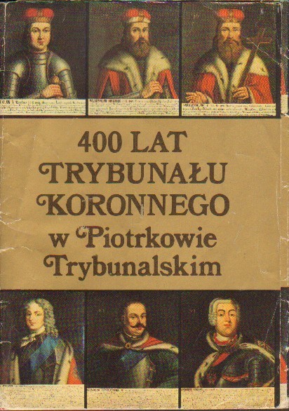| Inne tytuły: | Czterysta lat Trybunału Koronnego w Piotrkowie Trybunalskim Fragment panoramy Piotrkowa wg sztychu E. J. Dahlberga z 2 połowy XVII w. z nieistniejącym dziś ratuszem miejskim - siedzibą Trybunału Koronnego (w głębi) Miecze katowskie Trybunału Koronnego, XVI i XVII w Pierwsza strona konstytucji sejmu walnego z 1578 r. o powołaniu Trybunału koronnego Piotrków Trybunalski - dawny pałac królewski, zbudowany w latach 1511-1521 przez Benedykta z Sandomierza, prototyp pałacu-wieży w Polsce; rezydencja starosty piotrkowskiego Piotrków Trybunalski - pozostałości murów miejskich z czasów Kazimierza Wielkiego wzdłuż placu Tadeusza Kościuszki Piotrków Trybunalski - widok ogólny Portret Leona Kuczyńskiego - deputata na Trybunał Koronny w 1777 r.; obraz olejny nieznanego malarza z XVIII w Portret Stefana Batorego, za panowania którego, w 1578 r., został w Piotrkowie powołany do życia Trybunał Koronny - centralny organ sądowniczy; obraz malarza królewskiego Marcina Kobera z 1583 r. - znajduje się w klasztorze Misjonarzy w Krakowie Portret ks. Michała Lipskiego - prezydenta Trybunału Koronnego w 1759 r.; obraz olejny nieznanego malarza z XVIII w |