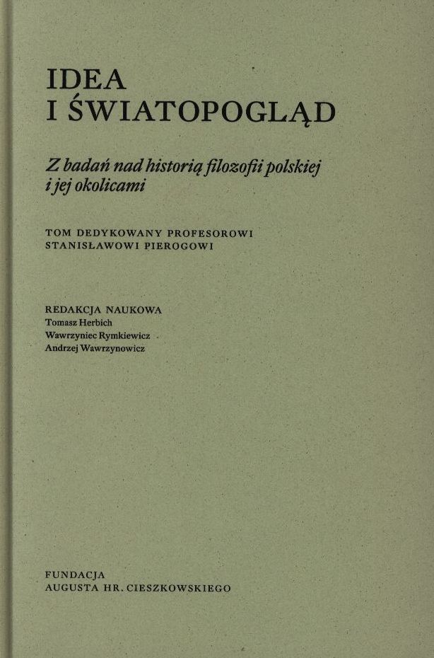 | Inne tytuły: | tom dedykowany Profesorowi Stanisławowi Pierogowi z badań nad historią filozofii polskiej i jej okolicami |