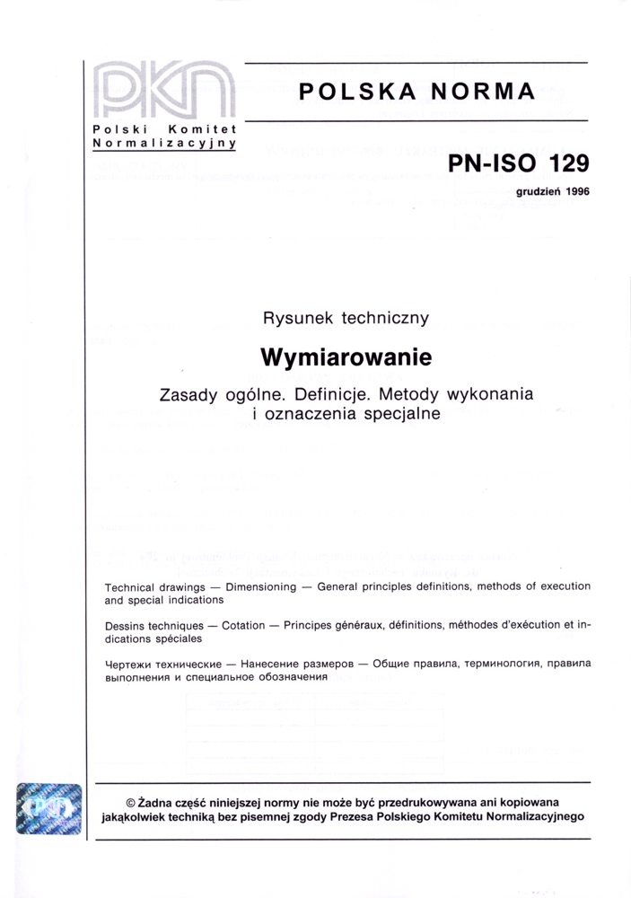 Rysunek techniczny - Wymiarowanie - Zasady ogólne. Definicje. Metody wykonania i oznaczenia specjalne PN-ISO 129