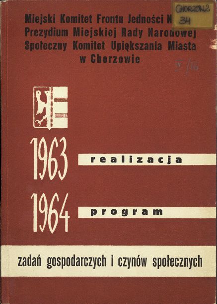 Program zadań gospodarczych Miejskiej Rady Narodowej i czynów społecznych mieszkańców miasta Chorzowa na rok 1964 oraz sprawozdanie z wykonania programu gospodarczego w roku 1963