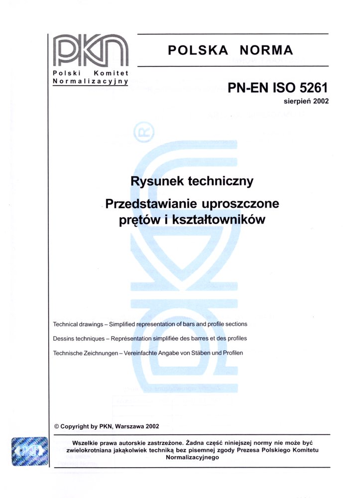 Rysunek techniczny - Przedstawianie uproszczone prętów i kształtowników PN-EN ISO 5261