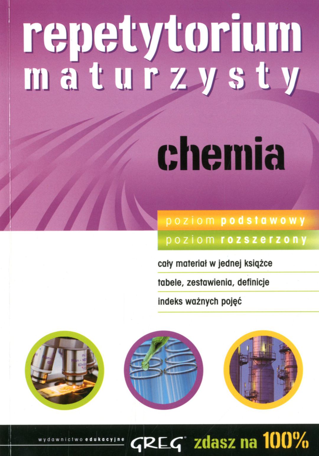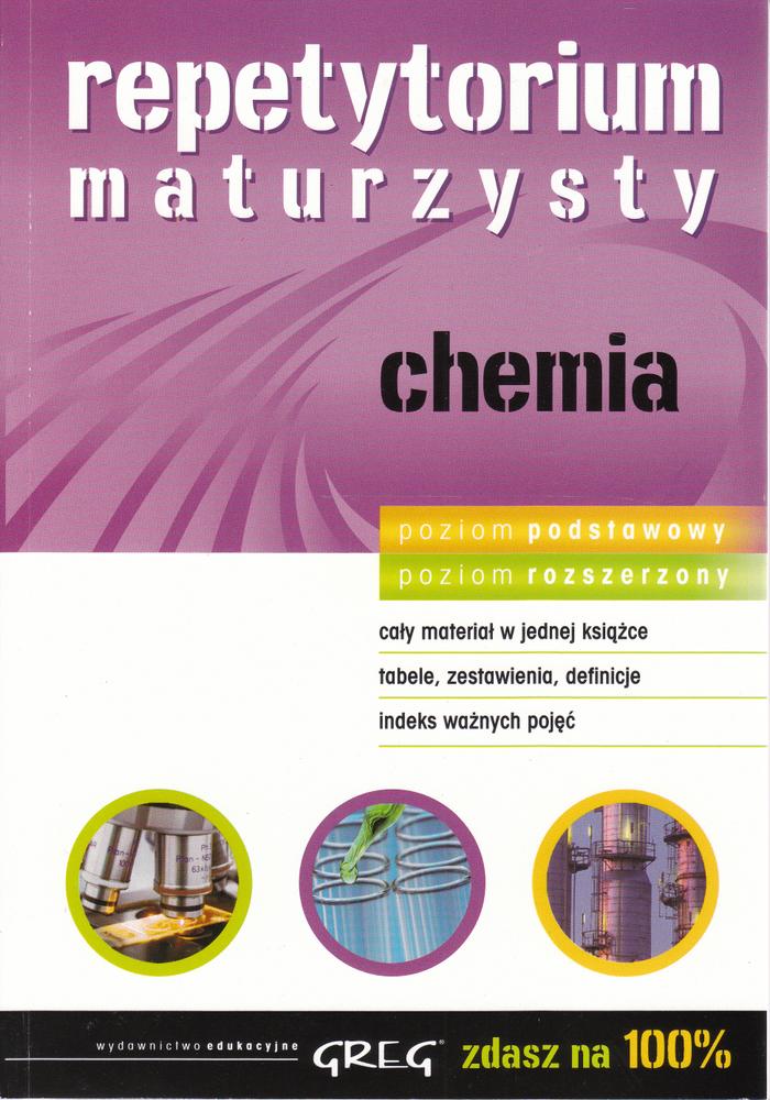 | Inne tytuły: | chemia cały materiał w jednej książce, tabele, zestawienia, definicje, indeks ważnych pojęć Chemia - repetytoriu maturzysty |