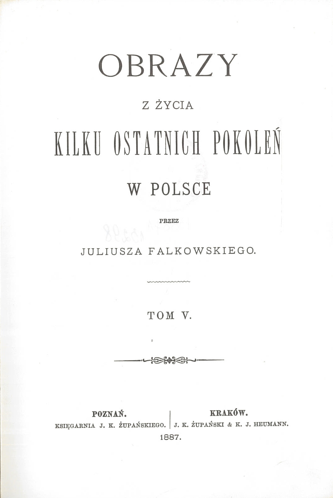 | Inne tytuły: | Obrazy z życia kilku ostatnich pokoleń w Polsce T. 5 |