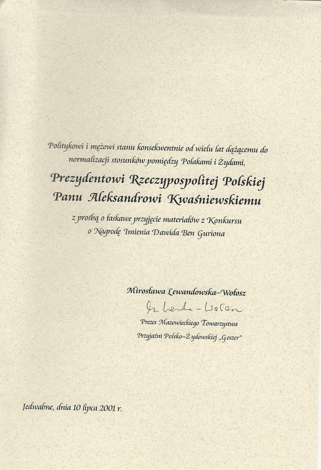 wspomnienia Polaków i Żydów nadesłane na Konkurs Pamięci Polsko-Żydowskiej o Nagrodę Imienia Dawida Ben Guriona zorganizowany w Płońsku pod patronatem honorowym prezydenta Rzeczypospolitej Polskiej pana Aleksandra Kwaśniewskiego
