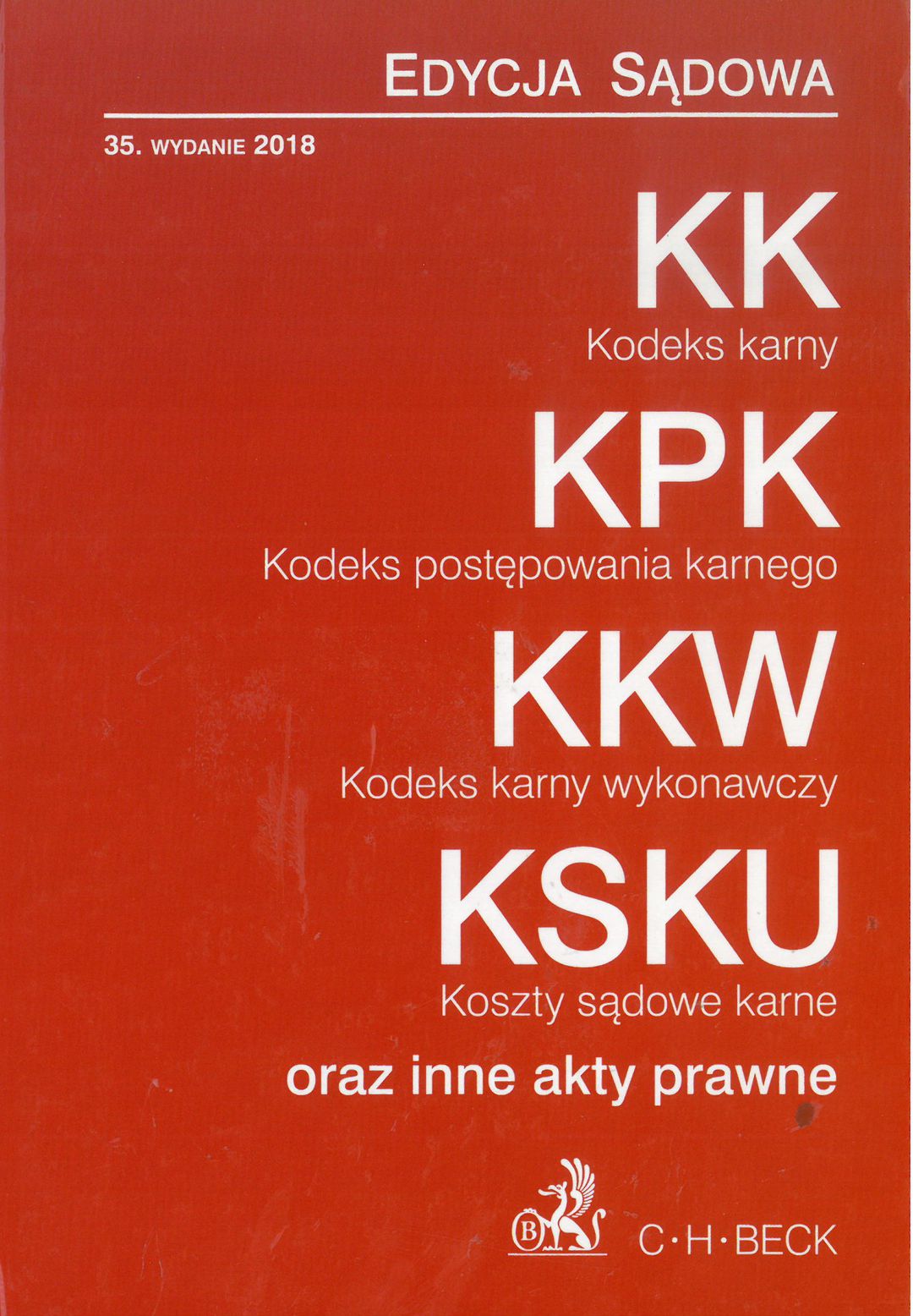 | Inne tytuły: | teksty jednolite wraz z indeksem rzeczowym KK, KPK, KKW, KSKU oraz inne akty prawne |