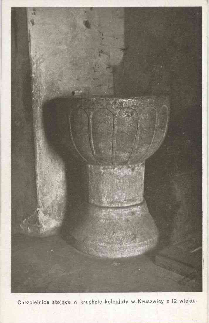 Chrzcielnica stojąca w kruchcie kolegjaty w Kruszwicy z 12 w