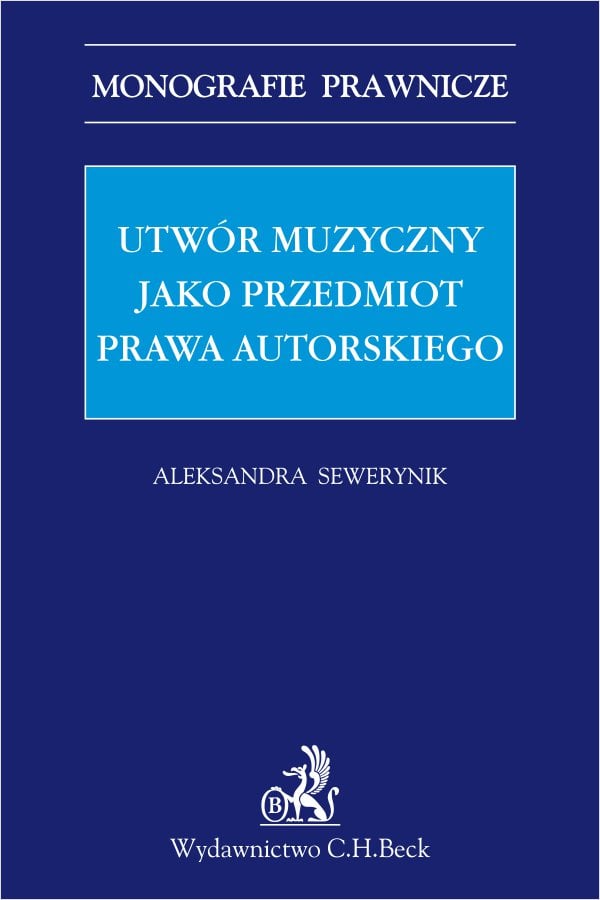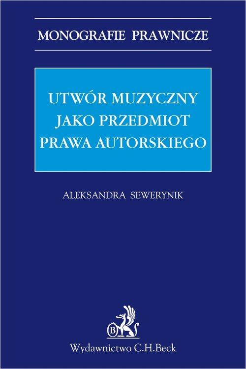 Utwór muzyczny jako przedmiot prawa autorskiego" to monografia prawnicza autorstwa Aleksandry Sewerynik, która oprócz studiów prawniczych, ukończyła Uniwersytet Muzyczny Fryderyka Chopina. Dzięki temu autorka swobodne porusza się w obszarach prawa i muzyki, co pozwala na integralne podejście do zagadnienia ochrony utworu muzycznego w prawie autorskim.