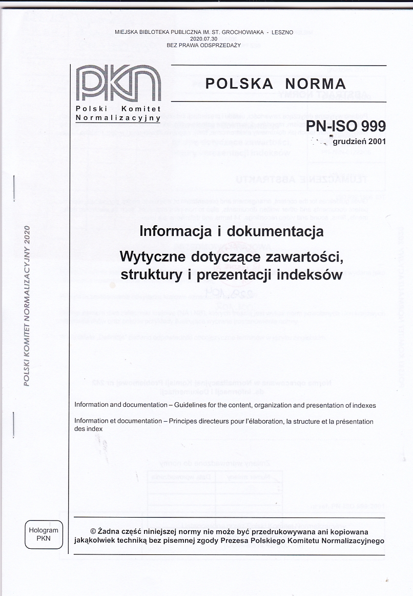 | Inne tytuły: | PN-ISO 999 |