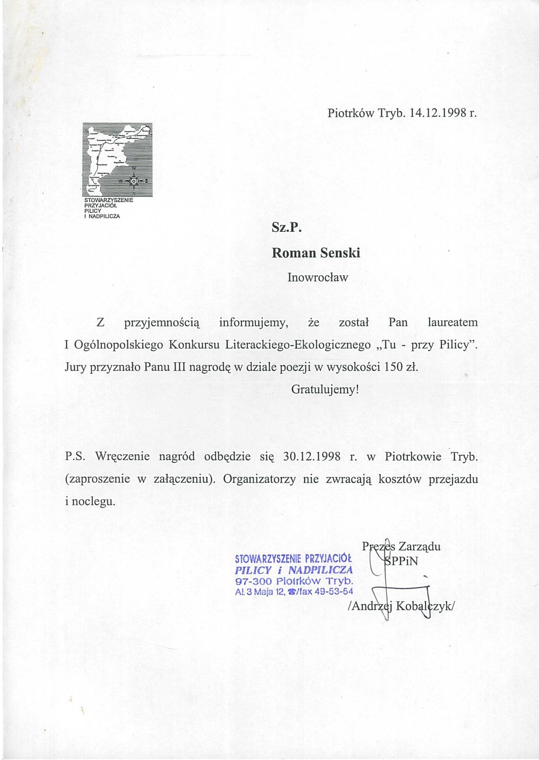 [Listy gratulacyjne dla Romana Senskiego]