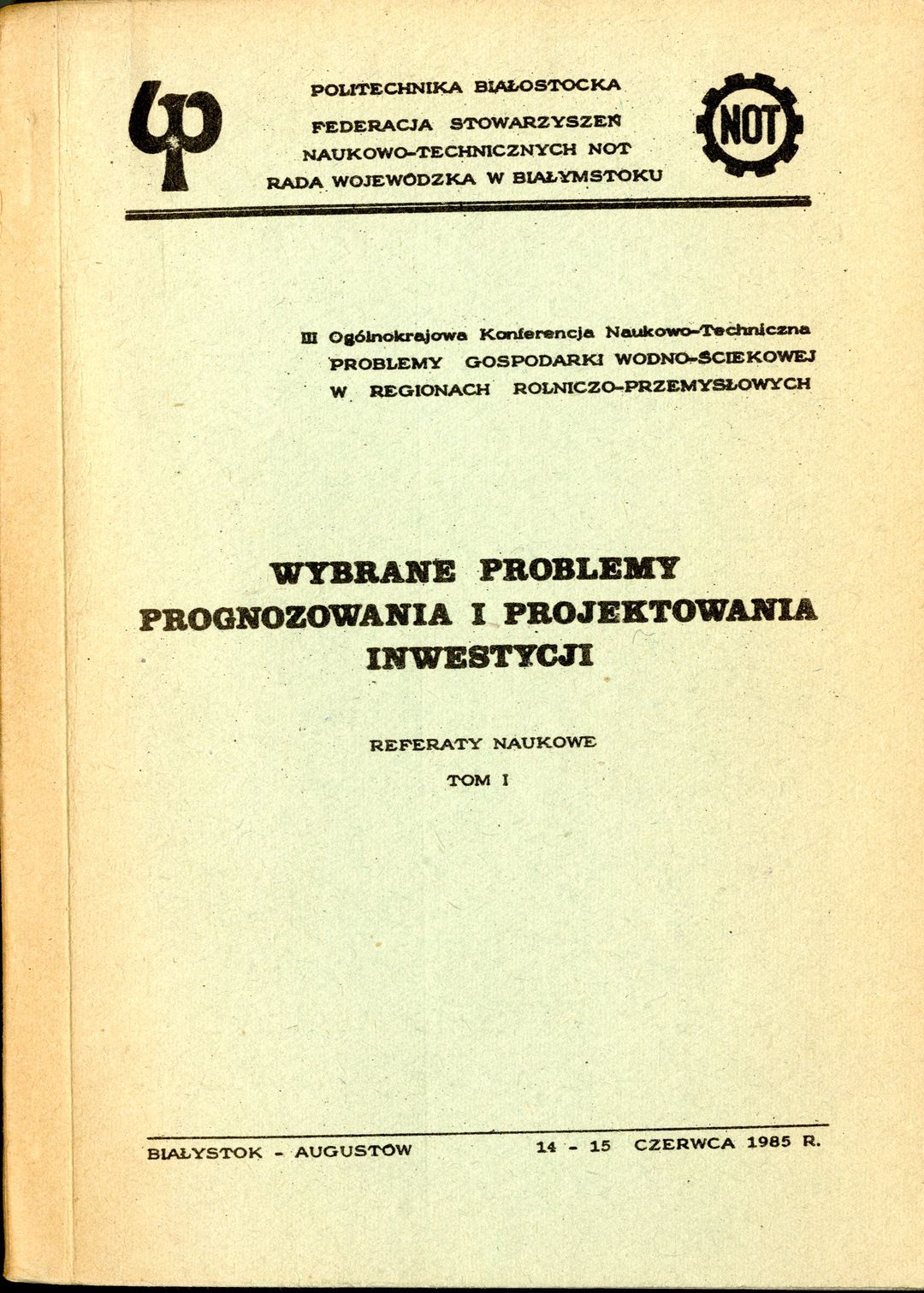 III Ogólnokrajowa Konferencja Naukowo-Techniczna: Wybrane problemy prognozowania i projektowania inwestycji: