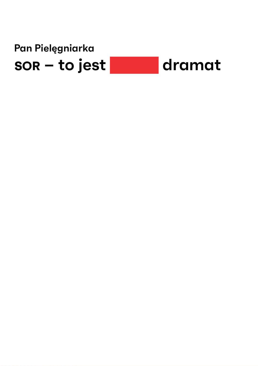 SOR — to jest dramat to książka, w której pielęgniarz systemu przybliża realia szpitalnych oddziałów ratunkowych. Krok po kroku przeprowadza nas przez kolejne poziomy SOR-owskiej rzeczywistości, w której przecież każdy z nas może się kiedyś znaleźć. Obnaża problemy ledwo oddychających jednostek Państwowego Ratownictwa Medycznego, które z trudem łatają dziury w ochronie zdrowia. Pokazuje ludzi — lekarzy, pielęgniarki, ratowników, pacjentów — a wraz nimi SOR-owską codzienność, która jest i zabawna, i straszna, i smutna. Wszystko po to, by pacjenci zrozumieli, chociaż trochę…