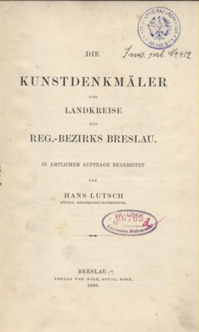 | Inne tytuły: | Kunstdenkmäler der Landkreise des Reg.-Bezirks Breslau, [Die Grafsch. Glatz] Verzeichnis der Kunstdenkmäler der Provinz Schlesien 2, |