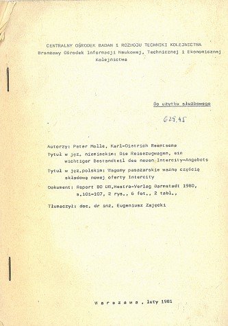 | Inne tytuły: | Wagony pasażerskie ważną częścią składową nowej oferty Intercity |