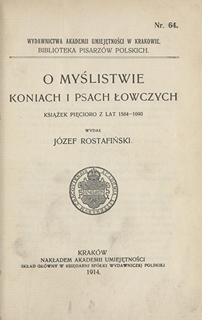 | Inne tytuły: | książek pięcioro z lat 1584-1690 Gospodarstwo jezdeckie, strzelcze i myśliwcze |