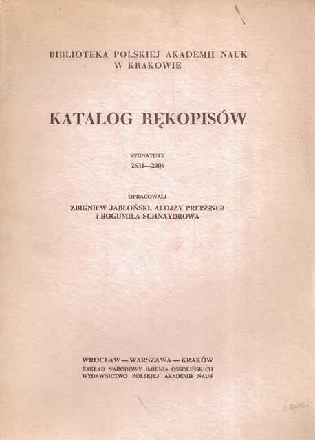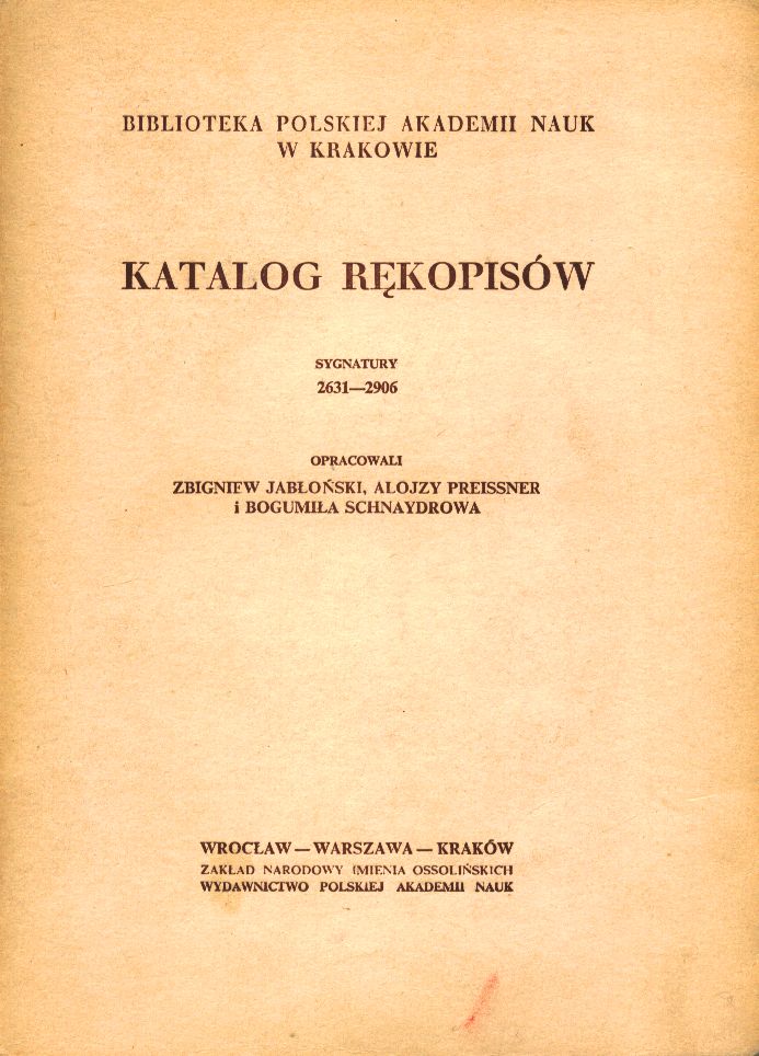 Katalog rękopisów: Sygnatury 2631-2906