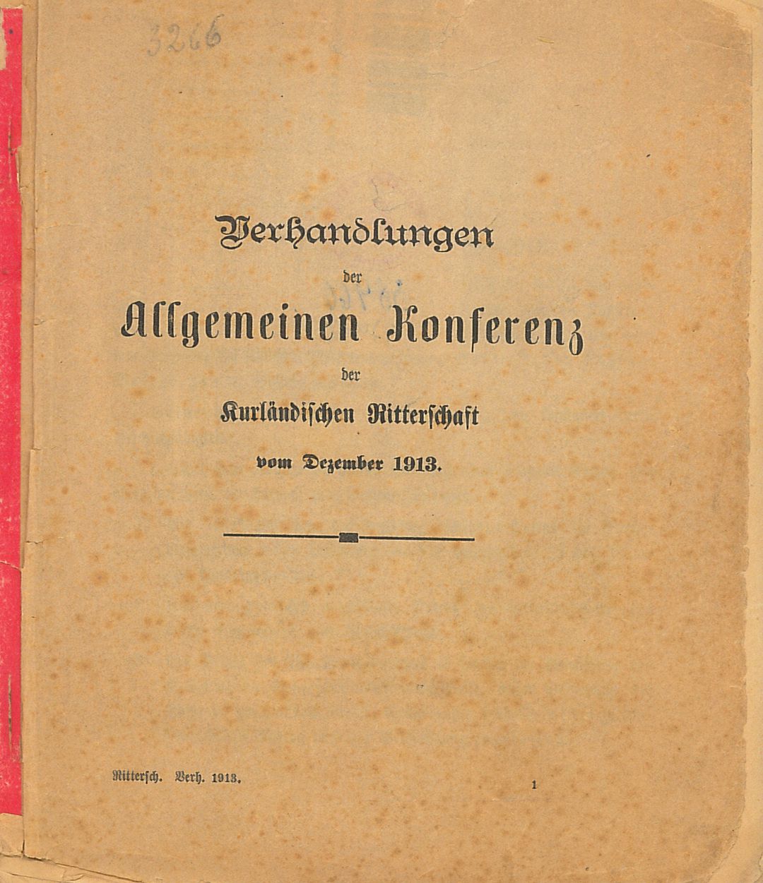 Verhandlungen der Allgemeinen Konferenz der Kurländischen Ritterschaft vom Dezember 1913