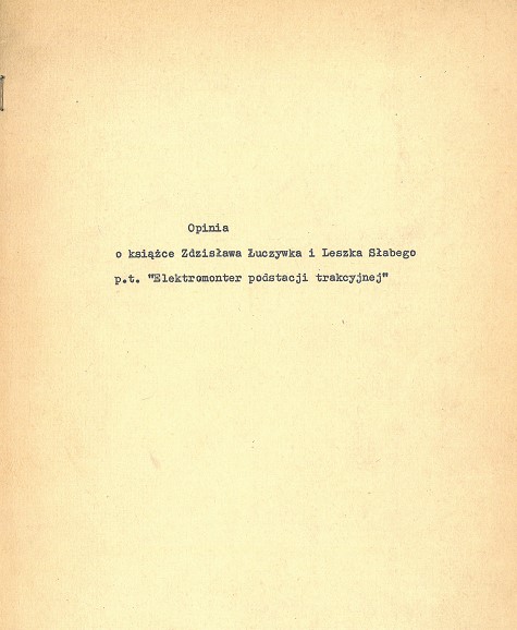 Opinia o książce Zdzisława Łuczywka i Leszka Słabego p.t. "Elektromonter podstacji trakcyjnej"