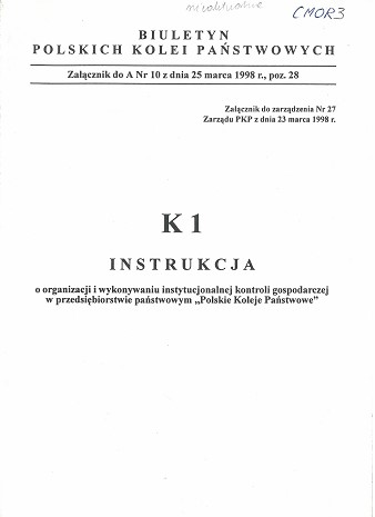 Instrukcja o organizacji i wykonywaniu instytucjonalnej kontroli gospodarczej w przedsiębiorstwie państwowym "Polskie Koleje Państwowe