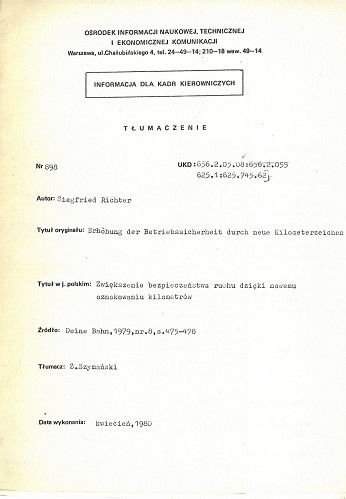 | Inne tytuły: | Zwiększenie bezpieczeństwa ruchu dzięki nowemu oznakowaniu kilometrów |