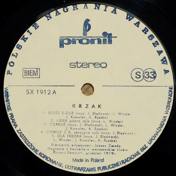 | Inne tytuły: | Blues E-dur Blues h-moll czyli smuteczek Chwile z B Czakuś Dla Fredka Dżemowa maszynka Lidek Przewrotna samba Skałki Łatka Smuteczek |
