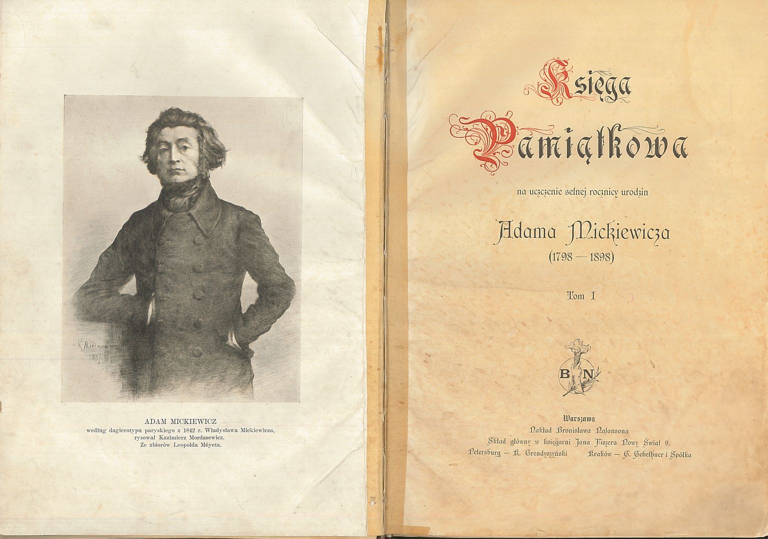 | Inne tytuły: | Księga pamiątkowa na uczczenie setnej rocznicy urodzin Adama Mickiewicza (1798-1898) Tom 1-2 |