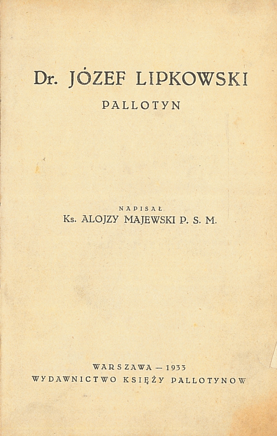 | Inne tytuły: | Doktor Józef Lipkowski pallotyn |