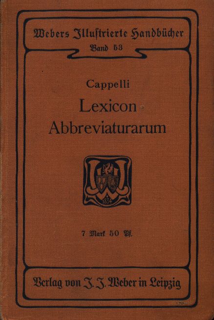 | Inne tytuły: | Wörterbuch lateinischer und italienischer Abkürzungen |