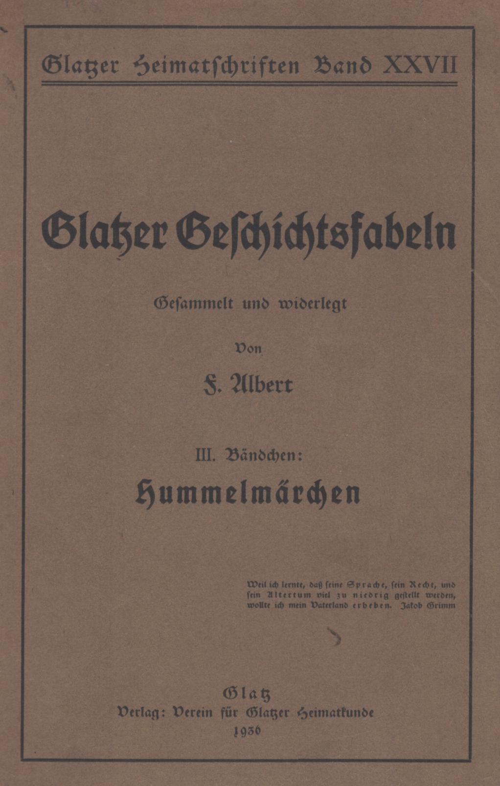 | Inne tytuły: | Hummelmärchen Glatzer Geschichtsfabeln Bd. 3, |