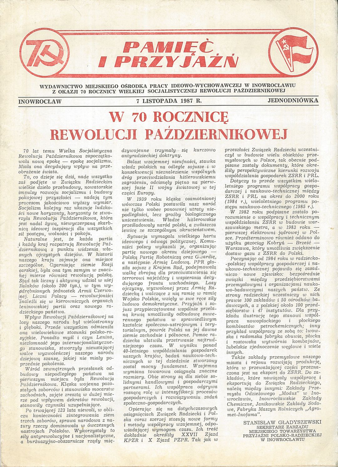 Wydawnictwo Miejskiego Ośrodka Pracy Ideowo-Wychowawczej w Inowrocławiu z okazji 70 rocznicy Wielkiej Socjalistycznej Rewolucji Październikowej