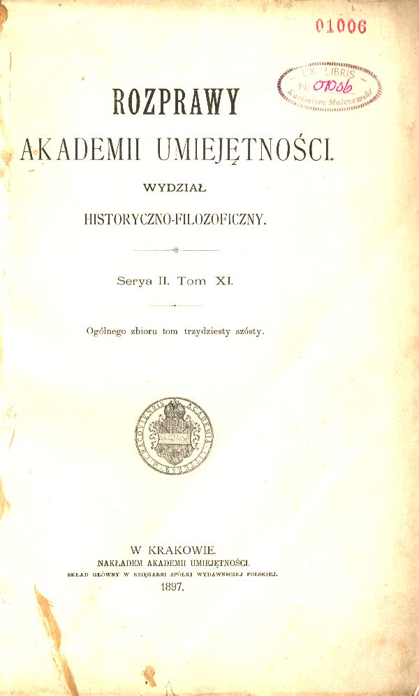 | Wydawcy: | nakładem Akademii Umiejętności (1897-1900) Akademia Umiejętności |