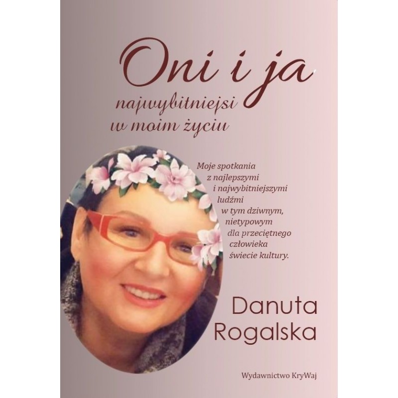 „Oni i ja” – Najwybitniejsi w moim życiu – to książkowy debiut Danuty Rogalskiej z Koszalina, która tak w jednym zdaniu zamieszczonym na tytułowej stronie określiła to, co czytelnik znajdzie na stronach książki: „Moje spotkania z najlepszymi i najwybitniejszymi ludźmi w tym dziwnym, nietypowym dla przeciętnego człowieka świecie kultury.” Książka zadedykowana jest córce Monice, wnuczce Leili, oraz tym wszystkim niezwykłym ludziom, których autorka spotkała na swojej drodze. Zanim Danuta Rogalska rozpoczęła tą swoją nietuzinkową przygodę z tymi najlepszymi i najwybitniejszymi pracowała m.in. w Bałtyckim Teatrze Dramatycznym w Koszalinie jako kierowniczka w biurze organizacji widowni. To tam poznała znanego reżysera – Tomasza Zygadłę od którego wszystko się zaczęło. Potem były wizyty w Warszawie, które wraz z upływem czasu skutkowały tym, że grono wybitnych ludzi, których poznawała wciąż się powiększało. Dzięki swojej pracy i determinacji w swoich działaniach szybko stała się osobą rozpoznawalną w tym twórczym środowisku. Ze strony różnych instytucji padały prośby i życzenia, a ona krok po kroku realizowała je. I właśnie w towarzystwie tych najwybitniejszych odwiedzała wiele różnych miejsc na terenie całej Polski. Były to szkoły, biblioteki, domy kultury, zakłady karne. Na stronach książki autorka opisuje najciekawsze historie, które współtworzyła. Pośród znanych, opisanych osób są takie nazwiska jak: Jerzy Kamas, Michał Bajor, Artur Barciś, rodzina Damięckich, Paweł Deląg, Jarosław Jakimowicz, Kazimierz Kaczor, Emilian Kamiński, Laura Łącz, Piotr Machalica, Wojciech Malajkat, Jan Nowicki, Marian Opania, Cezary Pazura, Katarzyna Skrzynecka, Dorota Stalińska, Karol Strasburger, Jan Wieczorkowski, Zbigniew Zamachowski, Wiktor Zborowski, Cezary Żak. Autorka wymienia także takich artystów jak: Jerzy Bończak, Zofia Merle, Dariusz Kordek, Bożena Dykiel, Olaf Lubaszenko, Teresa Lipowska, Andrzej Nejman, Małgorzata Potocka, Magda Stużyńska, Michał Żebrowski, Magdalena Zawadzka, Edyta Jungowska, Paweł Wawrzecki, Joanna Trzepiecińska. Istotnym walorem książki jest rozdział „Oni – Ci najwybitniejsi o mnie”, w którym znajdują się teksty o autorce (opatrzone w większości autografem) napisane przez takich twórców jak: Michał Bajor, Mateusz Damięcki, Kazimierz Kaczor, Laura Łącz, Dorota Stalińska, Wiktor Zborowski. „W mojej galerii” – to kolejna część książki w której znajdują się zdjęcia na których czytelnik będzie miał możliwość rozpoznać takich artystów jak: Janusz Anderman, Dariusz Kordek, Olaf Lubaszenko, Zofia Merle, Andrzej Nejman, Radosław Pazura, Joanna Trzepiecińska, Paweł Wawrzecki, Elżbieta Zającówna. Całość, poprzedzona słowem wstępnym napisanym przez autorkę wzbogacona jest dużą ilością czarno-białych zdjęć będących pamiątką wielu niezwykłych chwil...(http://www.krywaj.pl/sklep/ksiazki/436-oni-i-ja-9788366638877.html)