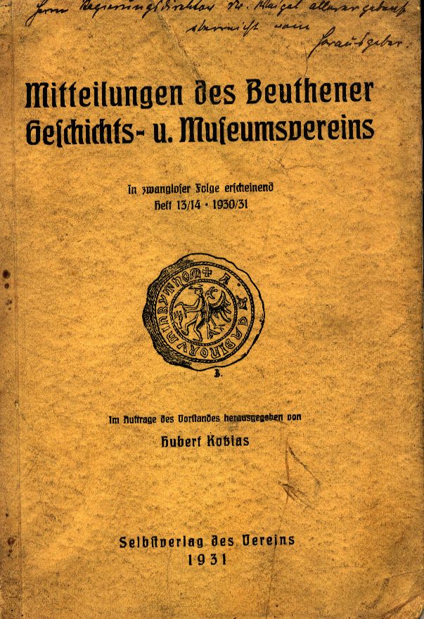 | Inne tytuły: | Mitteilungen des Beuthener Geschichts- und Museumsvereins Heft 13/14 (1930/31) |