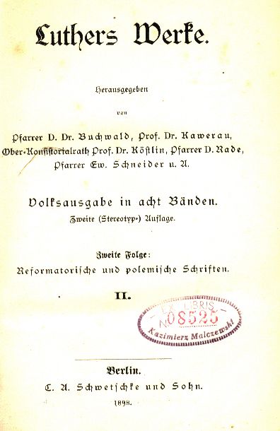 | Serie wydawnicze: | Luthers Werke Ze Zbiorów Kazimierza Malczewskiego Volksausgabe in 8 Bänden |