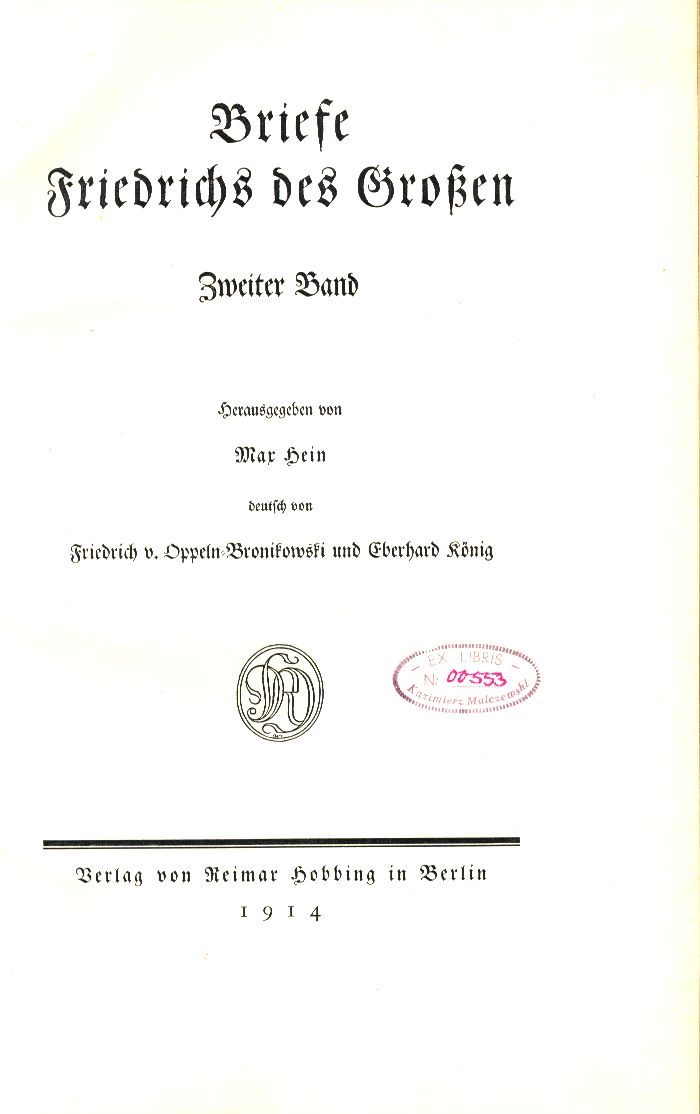 | Inne tytuły: | Briefe Friedrichs des Grossen Bd. 2 |