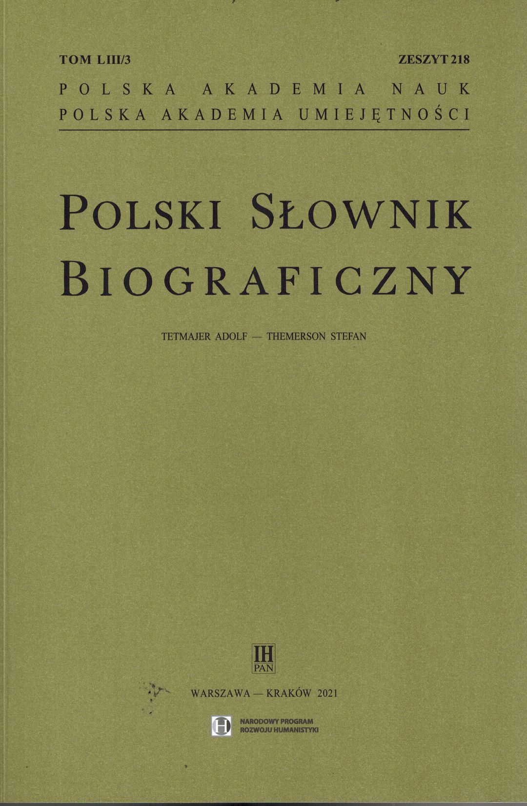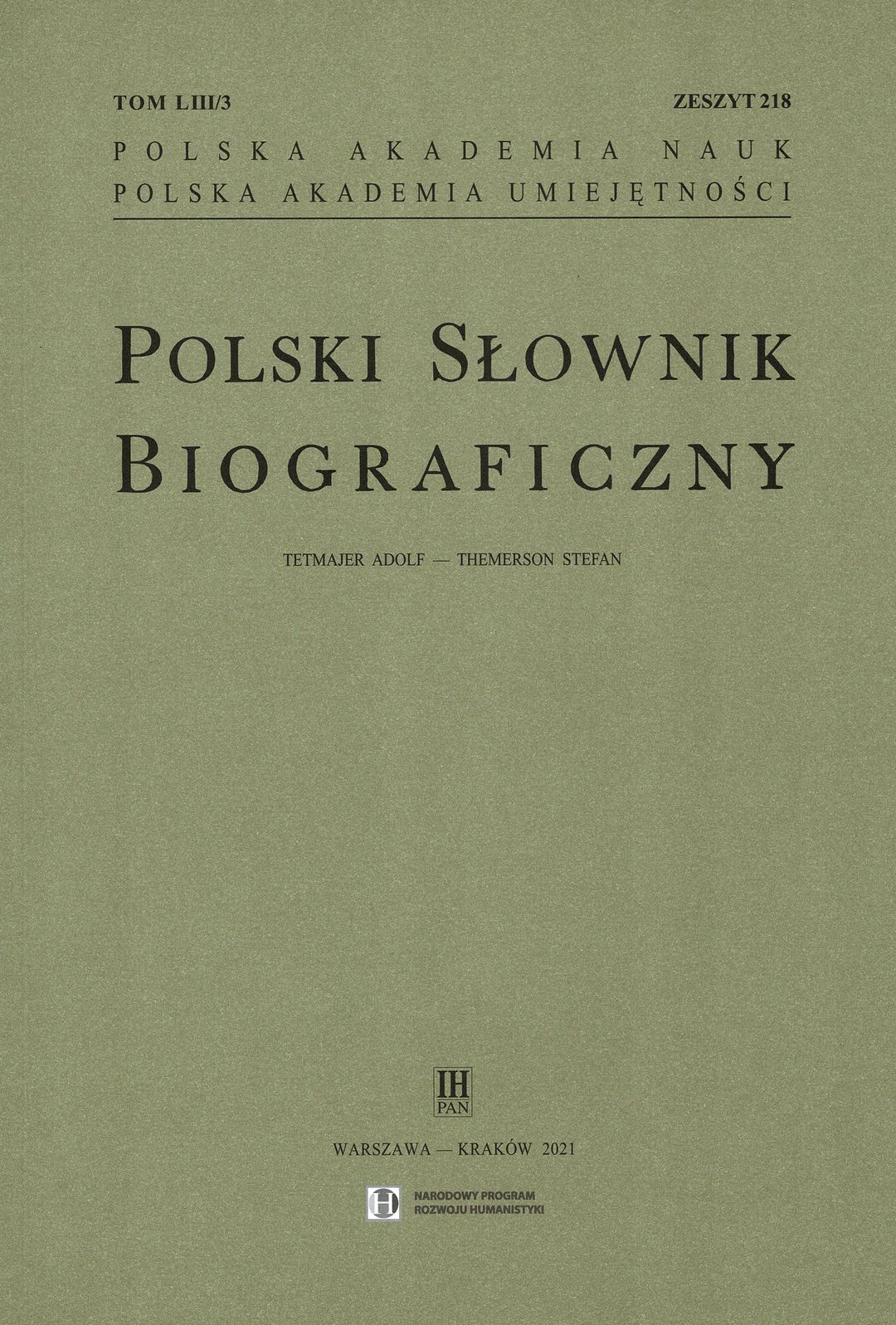 | Inne tytuły: | [zeszyt] 3, [ogólny zbiór] 218, z. 218, [ogólnego zbioru] z. 218, Polski słownik biograficzny T.53/3. Z 218, |