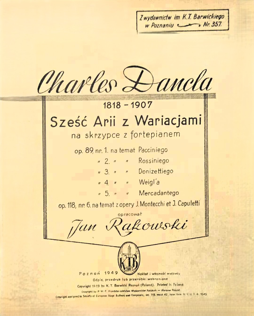 | Autorzy: | Charles Dancla (1817-1907) Jan Rakowski (1898-1962) |