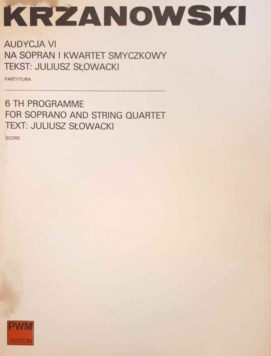 | Inne tytuły: | na sopran i kwartet smyczkowy 6th programme |