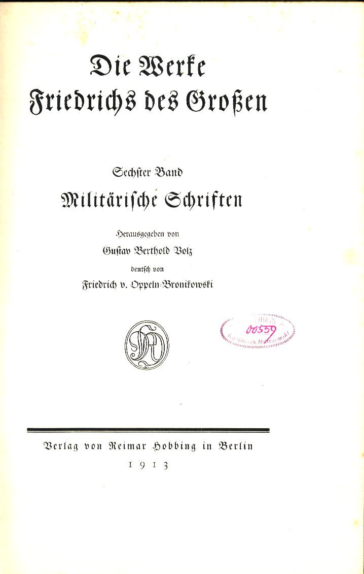 | Wydane w seriach: | Die Werke Friedrichs des Grossen in deutscher Übersetzung Ze Zbiorów Kazimierza Malczewskiego |