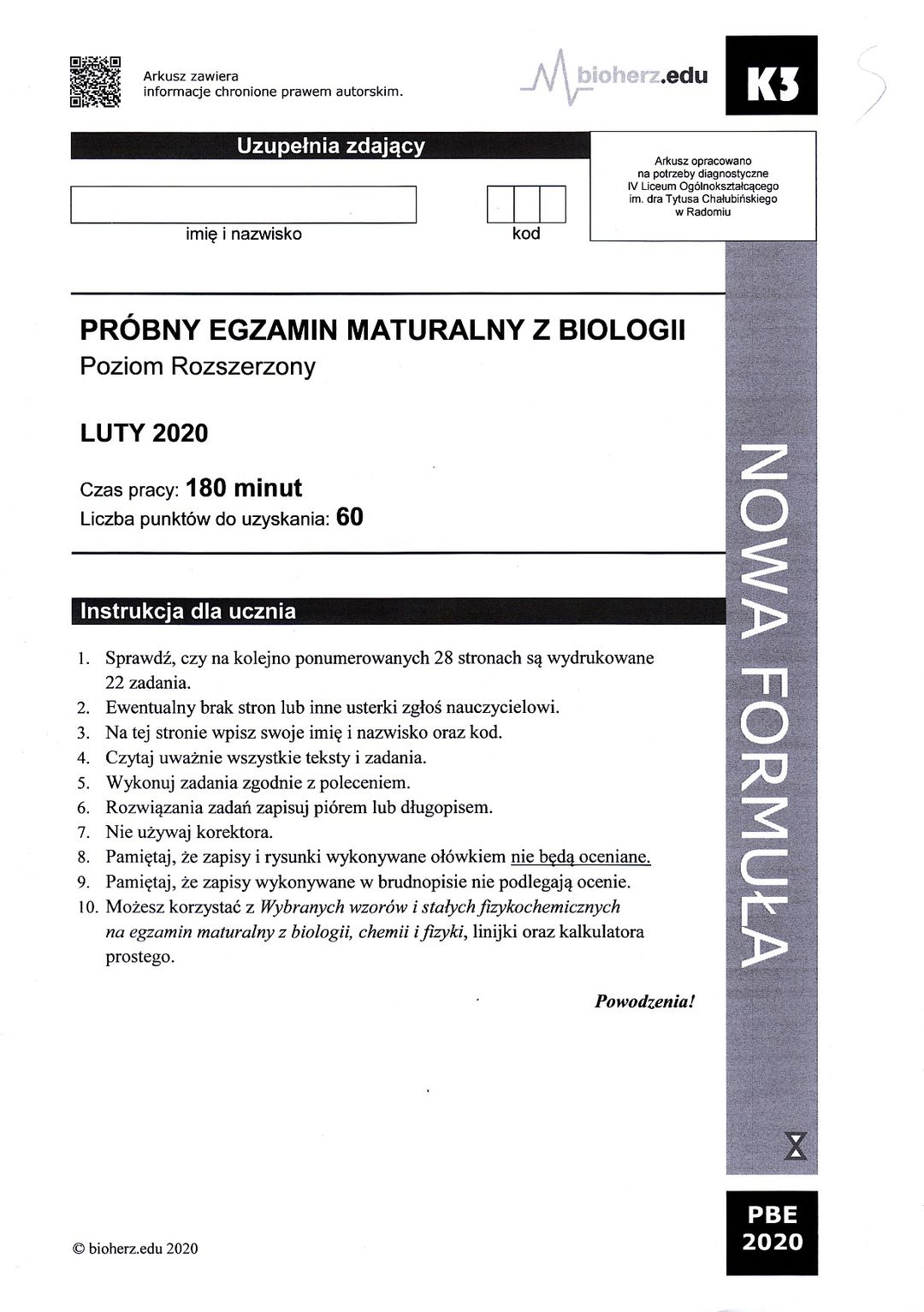 Próbny egzamin maturalny z biologii: