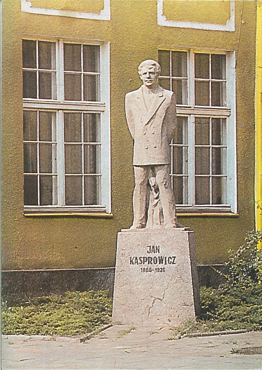 pomnik Jana Kasprowicza przed wejściem do gmachuI Liceum Ogólnokształcącego