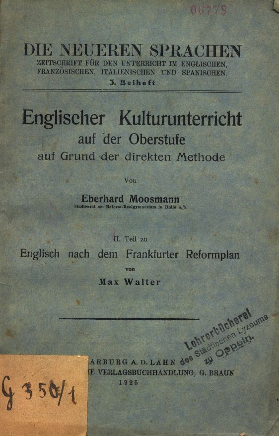 II. Teil zu Englisch nach dem Frankfurter Reformplan von Max Walter