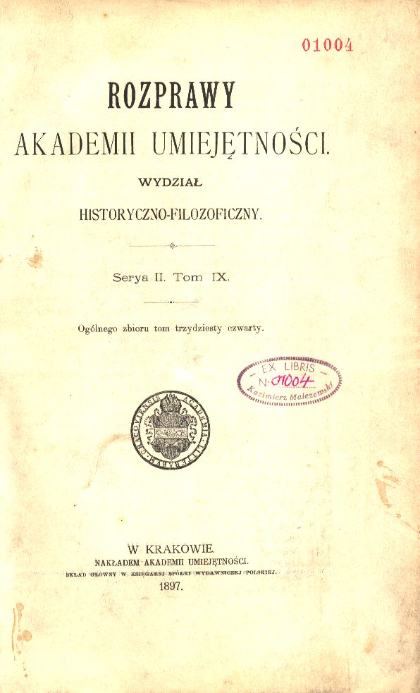 | Wydawcy: | nakładem Akademii Umiejętności (1897) Akademia Umiejętności |