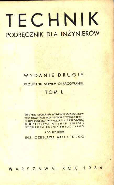 | Wydawcy: | Wydział Wydawnictw Technicznych przy Stowarzyszeniu Techników Polskich z zapomogą Ministerstwa Wyznań Religijnych i Oświecenia Publicznego (1936) Stowarzyszenie Techników Polskich |