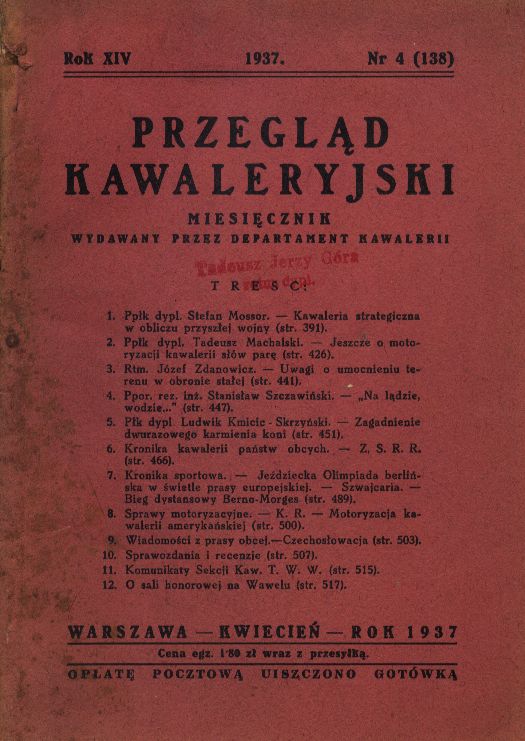 | Instytucja sprawcza: | Polska - Ministerstwo Obrony Narodowej - Departament Kawalerii |