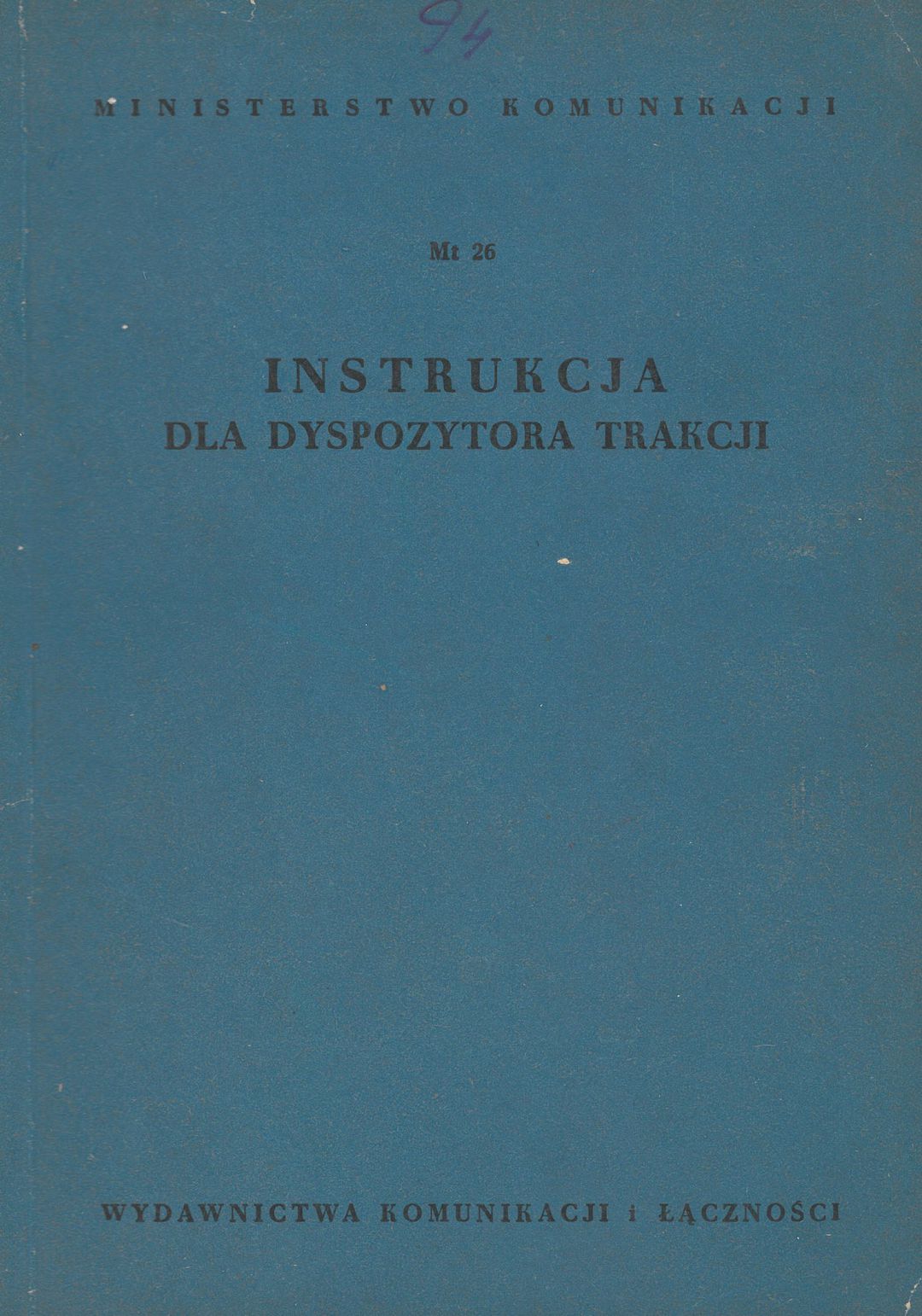 | Inne tytuły: | Instrukcja dla dyspozytora trakcji MT 26 Mt26 |
