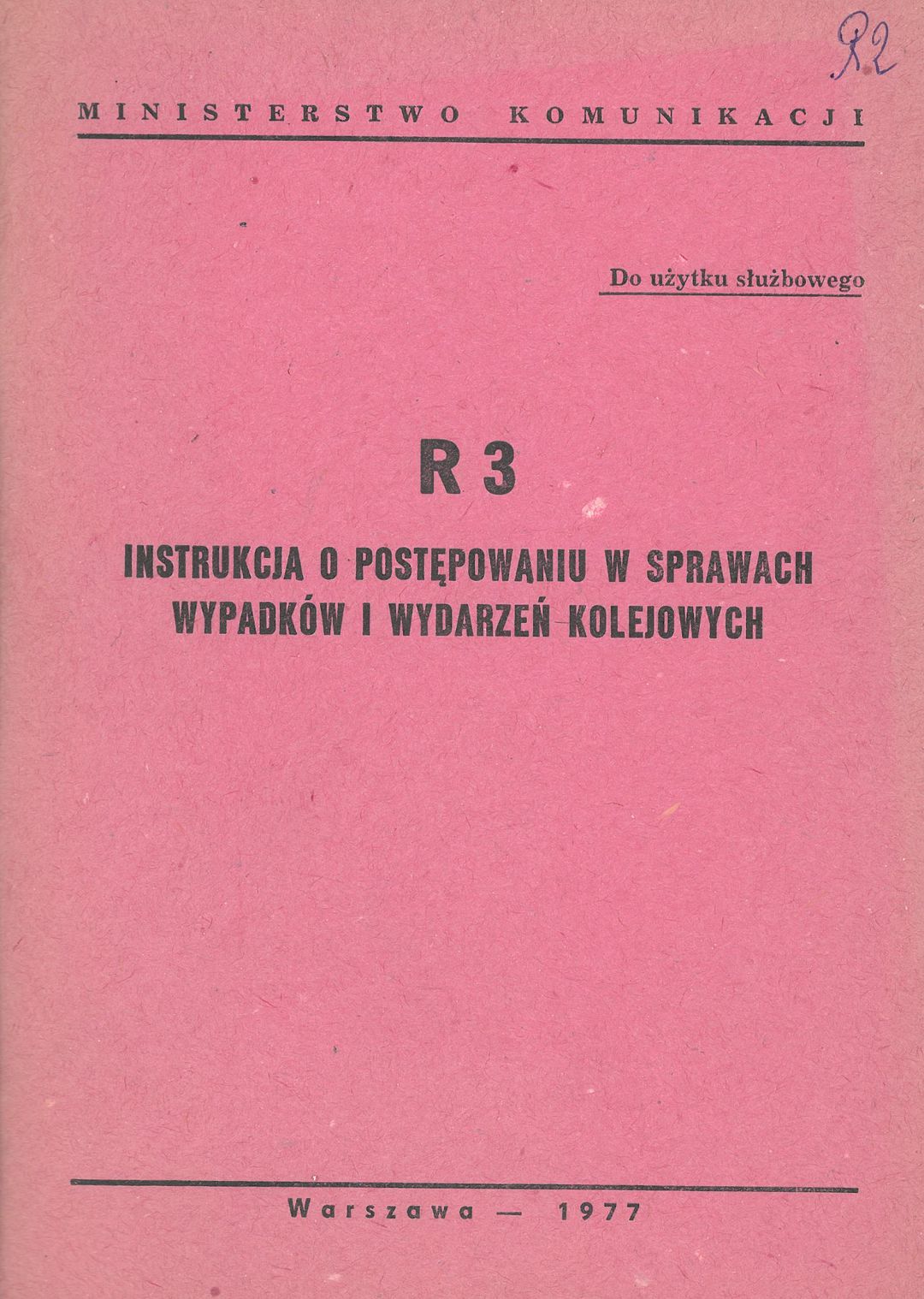 | Inne tytuły: | Instrukcja o postępowaniu w sprawach wypadków i wydarzeń kolejowych R 3 R3 |