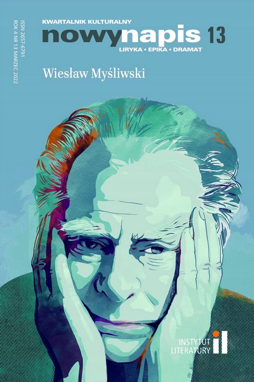 | Inne tytuły: | Wiesław Myśliwski kwartalnik kulturalny liryka, epika, dramat Nowy Napis rok 4, nr 13, marzec, 2022 |