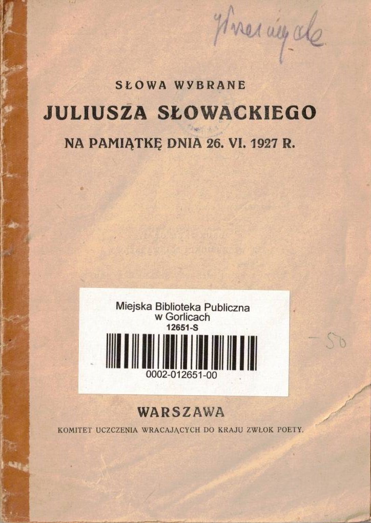 Słowa wybrane Juliusza Słowackiego na pamiątkę dnia 26.VI.1927 r