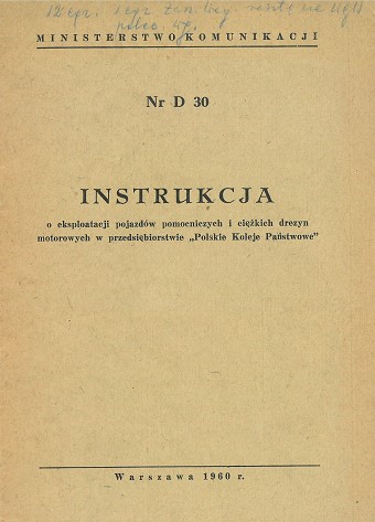Instrukcja o eksploatacji pojazdów pomocniczych i ciężkich drezyn motorowych w przedsiębiorstwie "Polskie Koleje Państwowe":