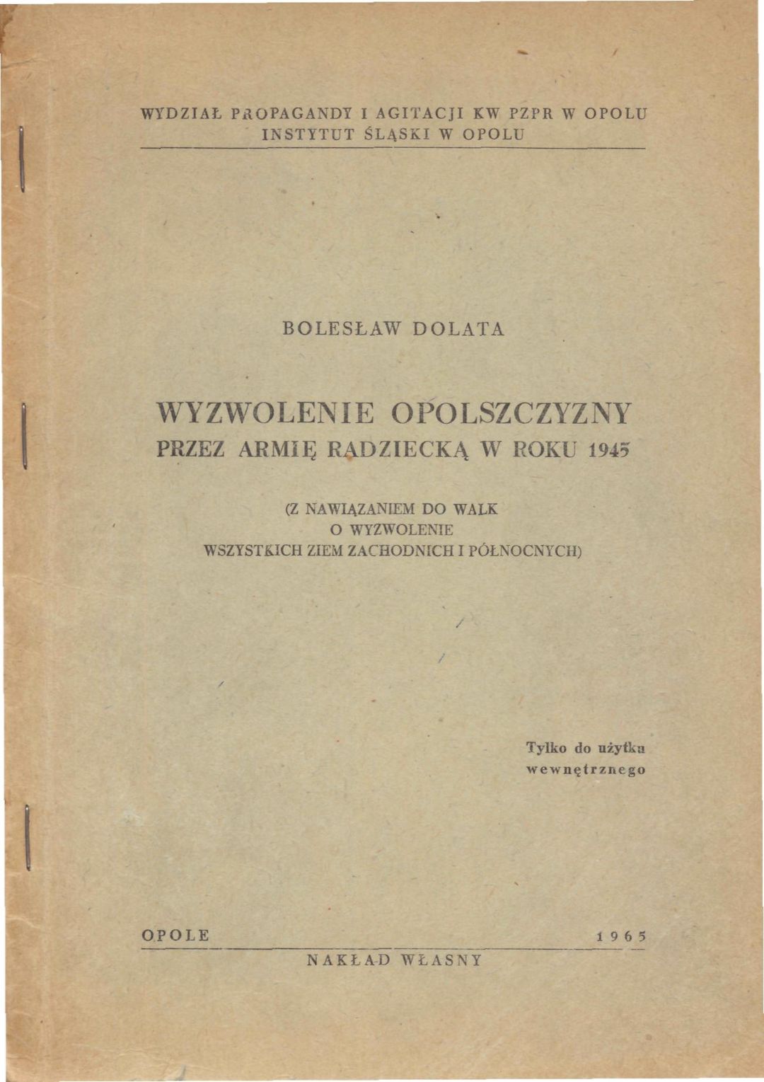 | Instytucja sprawcza: | Wydział Propagandy i Agitacji KW PZPR w Opolu |
